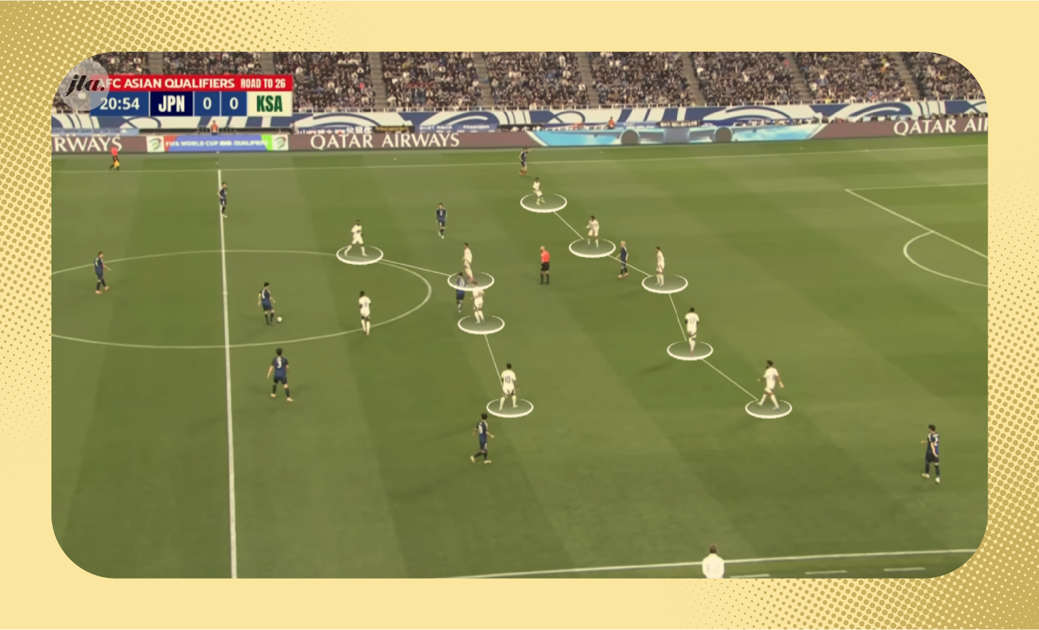 ما ميّز المنتخب السعودي في تلك الفترة هو المرونة التكتيكية الكبيرة التي تمتّع بها مع رينار، في الشكل بدون الكرة -تحديدًا-، إذ اختلف بناءً على نقاط قوة الخصم وضعفه والمطلوب من المباراة، وما إذا كانت داخل الأرض أو خارجها.