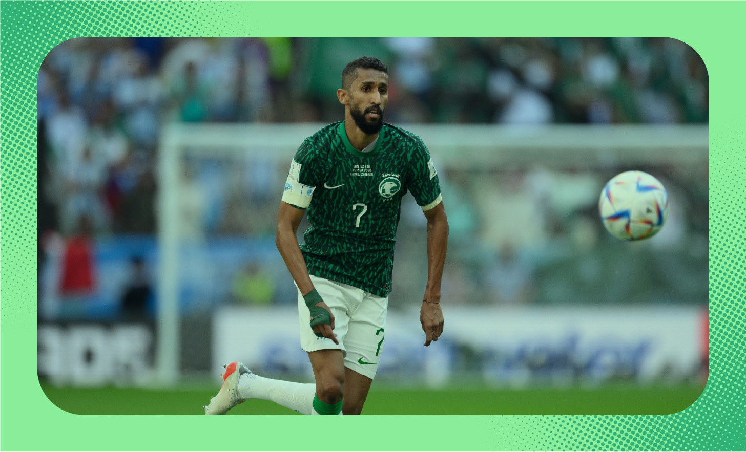 ولكنه بمهارة وسرعة بديهة تمكن من الخروج من هذا الضغط بكرة بكعبه وتحويلها إلى انطلاقة هجومية للمنتخب السعودي.